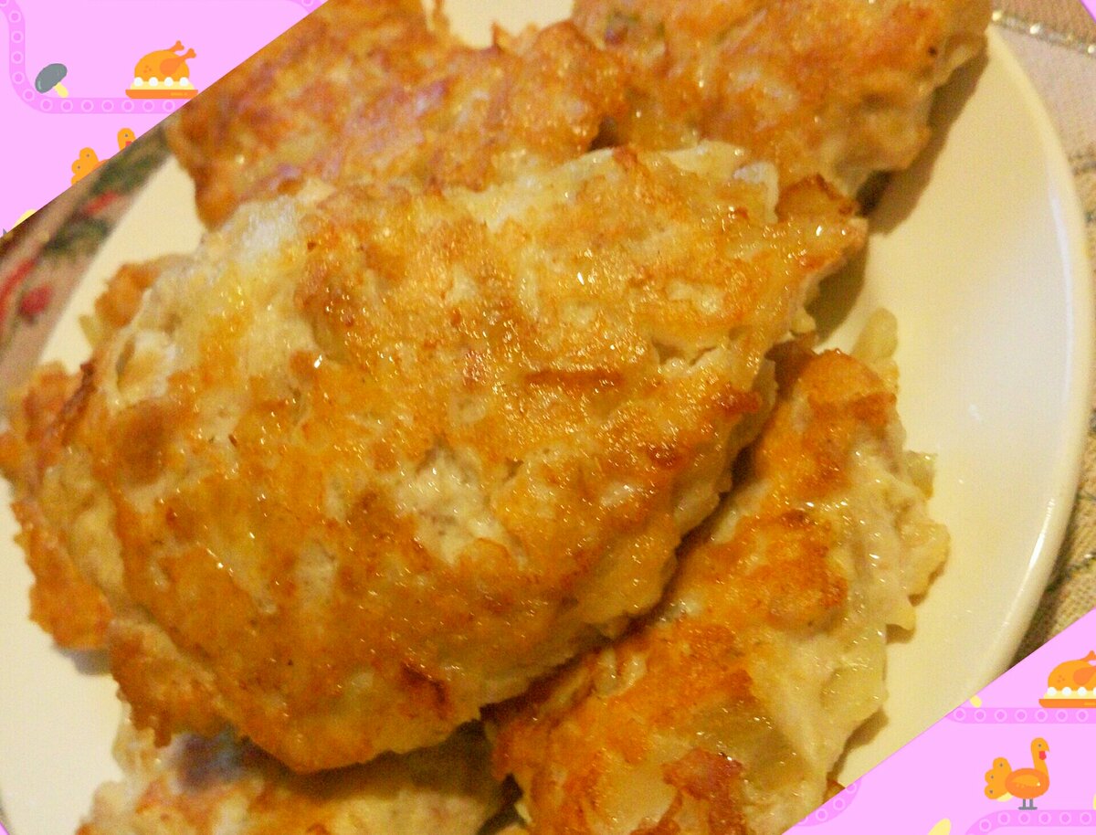 Как-то я рассказывала, как сделать котлеты из куриной грудки сочными при помощи сыра. Но есть и более бюджетный (а так же более полезный) вариант - с овсяными хлопьями. Последние в готовом блюде не чувствуются вообще, благодаря тому, что полностью пропитываются вкусом сопутствующих продуктов. А котлеты получаются сочными, вкусными и, ко всему прочему, более полезными - ведь геркулес положительно влияет на многие системы нашего организма. Итак, овсяные хлопья (абсолютно любые) заливаем стаканом кипятка и оставляем разбухать на часок. Грудку измельчаем в блендере или пропускаем через мясорубку. Лук режем кубиками и обжариваем на растительном масле до готовности. Перемешиваем фарш, обжаренный лук и разбухший геркулес. Добавляем пару яиц (или три яичных белка, оставшихся от позавчерашнего рецепта полезного супчика). Солим, перчим по вкусу и очень тщательно вымешиваем. На сковороде разогреваем умеренное количество растительного масла. Столовой ложкой выкладываем и формируем котлет