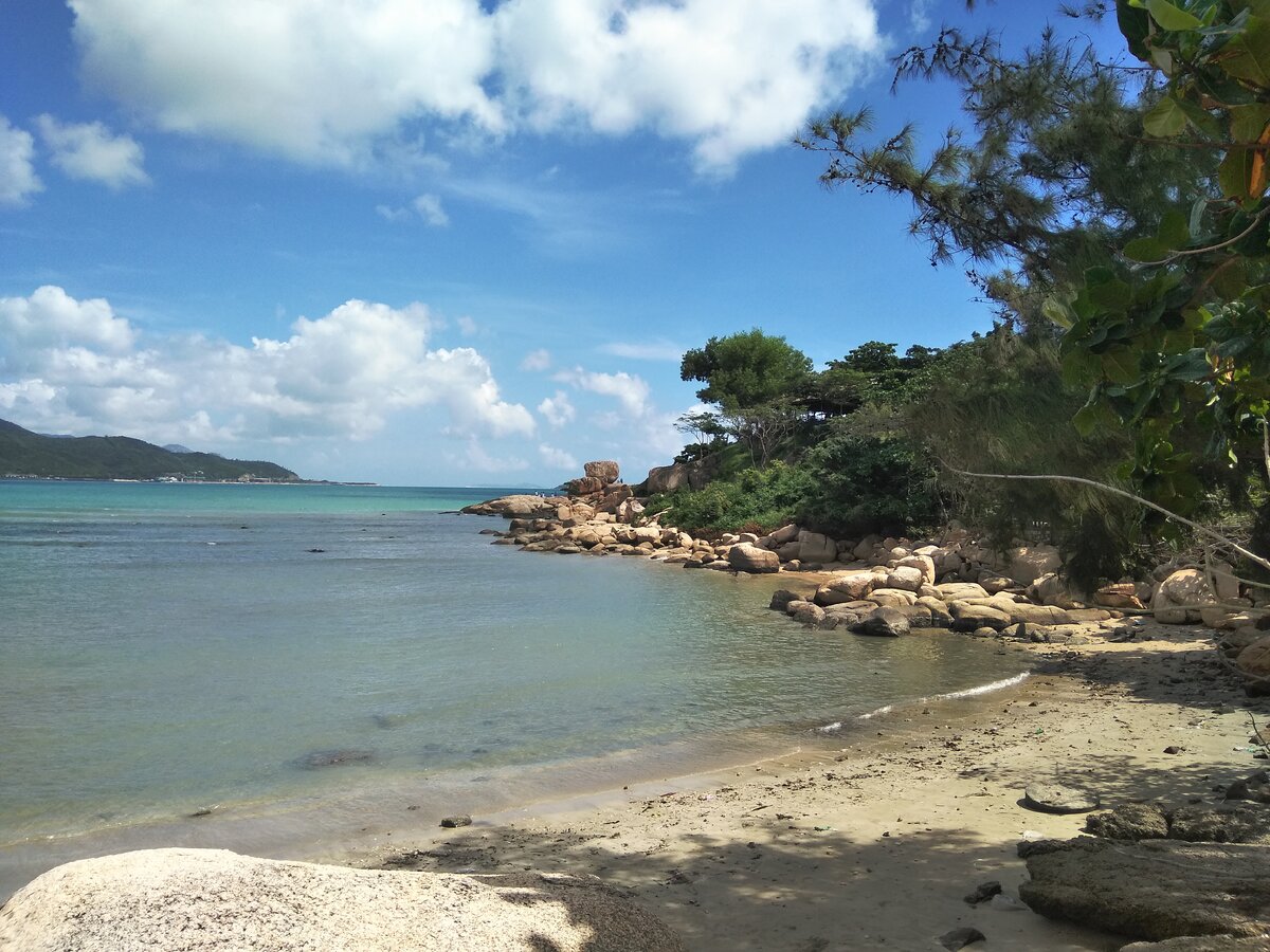 Утром на пляже я решила, что надо посмотреть какую-нибудь достопримечательность. Мой выбор пал на сад камней. В русском информационном центре есть очень хорошая карта Нячанга. С номерами маршрутов автобусов и указанием в основном посещаемых туристами мест. Остановка 4 маршрута недалеко от нашего отеля. В автобусе, оснащённом кондиционерами, работает кондуктор. Стоимость проезда 8000 донгов (24 рубля). Ехали несколько человек. И, похоже, никто из перевозчиков не жалуется на жизнь. Я показала на карте место, где надо выйти. Нас предупредили перед остановкой и показали в какую сторону идти. Входной билет в сад камней стоит 22000 донгов (66 рублей). Мне нравятся вьетнамцы. Даже в платном месте, где сама природа позволяет зарабатывать деньги - уборкой территории не заморачиваются. Да и ладно. Не надо смотреть под ноги. Зато в тени есть скамейки передохнуть и несколько туалетов, что очень кстати. А вид здесь и вправду замечательный. Только палящее солнце нас гнало в тень. А ветерок пр