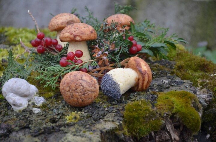 Удивительное лакомство из детства - эти печеньки-грибочки. Попробуйте приготовить, рецепт совсем не сложный, а получается так вкусно и красиво! От настоящих почти не отличить! Печенье "Грибочки" Ингредиенты: Сливочное масло - 120 г Пшеничная мука - 400 г Куриное яйцо - 1 шт Соль - 1 щепотка Сахар - 440 г Сметана - 125 г Вода - 190 мл Разрыхлитель -1 ч.л. Крахмал - 125 г. Мак - 125 г . Какао-порошок - 25 г Приготовление: