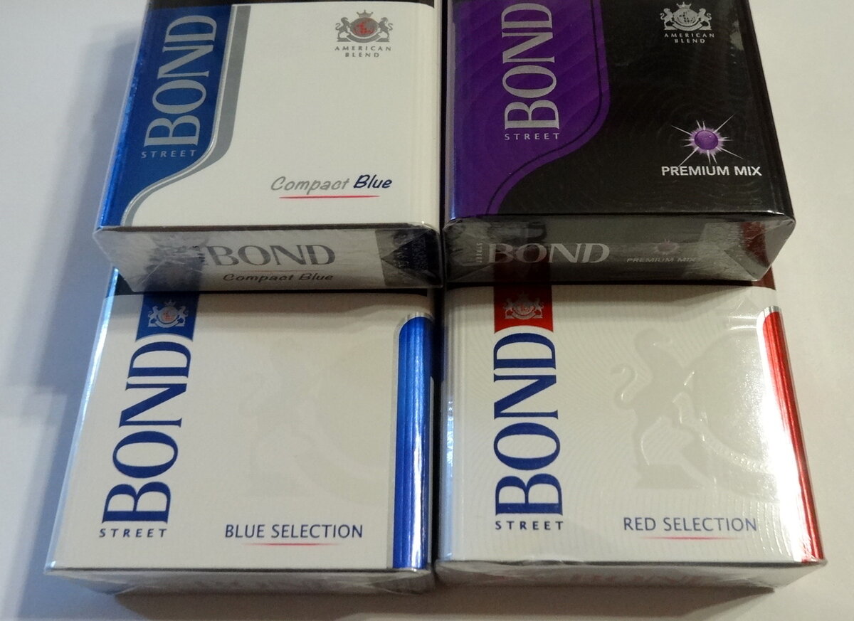 Bond Street Premium Mix. Этот сорт был первым у Bond'а открывающим новую линейку "кнопочных" сигарет. Сейчас, в формате бренда, предлагаются уже три сорта - собственно Premium Mix, яблочно-ментоловый Bond Street Compact Premium Green и "клубничный" Bond Street Compact Premium Ароматный.