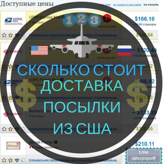При этом стоимость услуг государственной почты USPS растёт ежегодно. А вот американские почтовые посредникипредлагают куда более низкие цены на доставку, особенно это касается лёгких посылок. К тому же можно выбрать между следующими способами доставки: