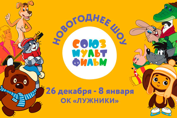 Союзмультфильм запускает новогоднее шоу Киностудия «Союзмультфильм» впервые в своей истории выступит организатором крупномасштабного новогоднего представления. Шоу будет проходить в Лужниках в ежедневном формате, с 26 декабря по 9 января включительно. В день будет проходить от двух до трех представлений. Основная идея проекта – создание новогоднего шоу для всей семьи, поставленного на классике советской мультипликации. В одном представлении будут объедены все герои мультфильмов «Золотой коллекции» студии – от «Ну, погоди!» и «Простоквашино» до «Летучего корабля» и «Бременских музыкантов». «Этим шоу мы хотим объединить всех членов семьи – детей и взрослых, бабушек и дедушек. Союз семьи, союз семейных интересов – настоящее праздничное объединение. Мультфильмы нашей студии известны и любимы всеми поколениями страны, и мы надеемся, что после посещения «Новогоднего шоу Союзмультфильм» сказочное настроение придет в каждый дом» - говорит Председатель правления студии Союзмультфильм Юлиана Сла