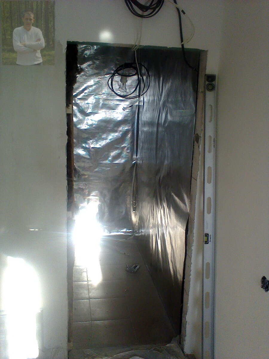 Продолжаем колдовать МАГИЮ! Отработал.... пораньше ушёл, под устал чёт я ЗДРАВСТВУЙТЕ!!! Приятного вечера, или когда там у Вас приятное время. Термос готов: Плиточник заходил, сказал "Защита от инопланетян". Фантастики об смотрелся. Фольга будет возвращать весь жар в сауну! Термос он и в африке ТЕРМОС. А вот и ОБРЕШЁТКА ... она нужна чтоб воздух гулял между фольгой и вагонкой, дольше служит вагонка. Пилил-крепил.... Стена с дверью не в понятках, дверь бы поставить... , а нет оной.. Тут зашёл ЗАКАЗЧИК.... И сказал: "О - красота вырисовывается" Дамы и господа "Официально заявляю ПОТОЛОК ГОТОВ!" Приятного ВРЕМЕНИ...