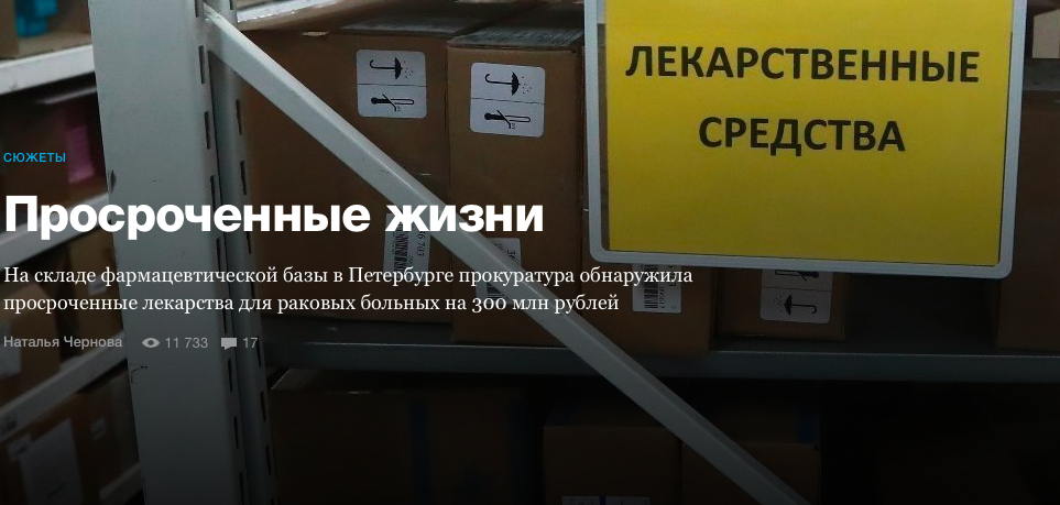 Дело даже не в том, что на заброшенном складе в Питере нашли просроченные лекарства от рака на 300 млн.руб. и даже не в том, что об этом не сочли нужным написать в Яндекс-новостях и скорее всего не покажут по Первой кнопке в вечерний прайм-тайм. Дело в том, что эти лекарства на 300 млн.руб. обнаруживаются брошенным на складе в момент, когда тот же первый канал собирает на операцию условному "мальчику Васе" 160-180 тыс.руб. со всех граждан России. Когда бабушка из города Бологое Тверской области набирает короткий номер для отправки 150 руб. страдающему Васе 4-х лет в этот же самый момент Прокуратура Санкт-Петербурга вывозит со склада в Питере просроченные лекарства от рака. Люди покидают страну или испытывают неприязнь к своей стране не на фоне плохой или приторно-хорошей новости по какому-либо ужасающе плохому или напротив, восхитительному событию. Они (люди) испытывают подобные чувства из-за сильно разрыва, когнетивного диссонанса, от бесконечного "далека" между этим полюсами, от нев