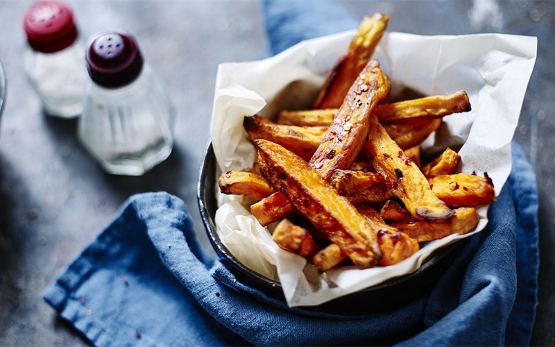 Знакомьтесь: батат. Вы его, наверное, уже заметили на полках магазинов, а теперь у вас в копилке будет новое блюдо из диковинного корнеплода. Внешне он очень похож на картофель, но на этом сходство заканчивается. Семейства у этих растений разные: наша любимая бульба — из пасленовых, батат — из вьюнковых. Картофель в сыром виде есть нельзя, батат — можно. Первый в разрезе белый или желтоватый, второй имеет красноватый и оранжевый оттенок. Батат по вкусу больше напоминает морковь с привкусом подмороженного картофеля с сильной крахмальной составляющей.