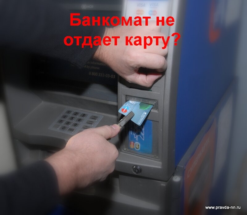 Приветствую Вас, дорогие читатели! Если у вас произошла такая ситуация и "банкомат" не хочет «отдавать» вашу карту назад – не отчаивайтесь, выход есть. Первым делом, конечно же, нужно обратиться к консультанту вашего банка и объяснить ему ситуацию. Ну, этот вариант «прокатит» если вы находитесь непосредственно в самом банке. А что же делать если все это произошло на улице, где и подсказать то некому? Запоминайте алгоритм действий. - Вам необходимо нажать на кнопку «ОТМЕНА или CANCEL» - Держать ее в нажатом состоянии от 3 до 5 минут "Банкомат" будет «пищать», «кряхтеть», «ругаться» - не обращаем на это внимания и продолжаем держать кнопку «ОТМЕНА» - После таких манипуляций, на экране обязательно появится предложение «ОТМЕНИТЬ ОПЕРАЦИЮ» - Не отпуская пальца с кнопки «ОТМЕНА», другой рукой нажимаем на подтверждение - «ДА» Вот и все, ваша карта снова вернется к вам в руки. P.S. Часто требуется просто подождать минут 20 и «глюк» терминала проходит сам. Но в любом случае, теперь вы знае