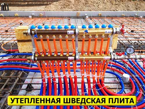 Строительство дома может быть ускорено, если Вы используете для возведения фундамента вариант «утепленная шведская плита». Он является одним из самых современных и потому сочетает в себе множество полезных качеств. Что же это такое утепленная шведская плита? При возведении УШП производится утепление всего фундамента, а значит, сразу же решается и вопрос экономии на отоплении дома. При устройстве данного вида фундамента возможно эффективное использование теплых полов. Предложенная технология не допускает расход теплоэнергетических параметров через фундамент в атмосферу, избавляет от необходимости устанавливать дополнительное отопительное оборудование на первом этаже. Отличительной особенностью шведской плиты является то, что это монолитный фундамент низкого углубления. В отличие от общепринятых вариантов стационарных фундаментов, он относится к категории «плавающих». Монолит на арматурах залитый бетоном, размещен на подушках из экструдированного пенополистерола. Этот же утеплитель