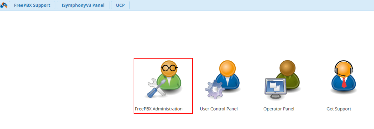 Подключившись к FreePBX 13 через интернет – браузер вам будет сразу предложено создать учетную запись администратора указав логин, пароль и адрес электронной почты администратора системы. После успешного создания, выберите на главной страницу пункт FreePBX Administration и укажите созданные параметры: