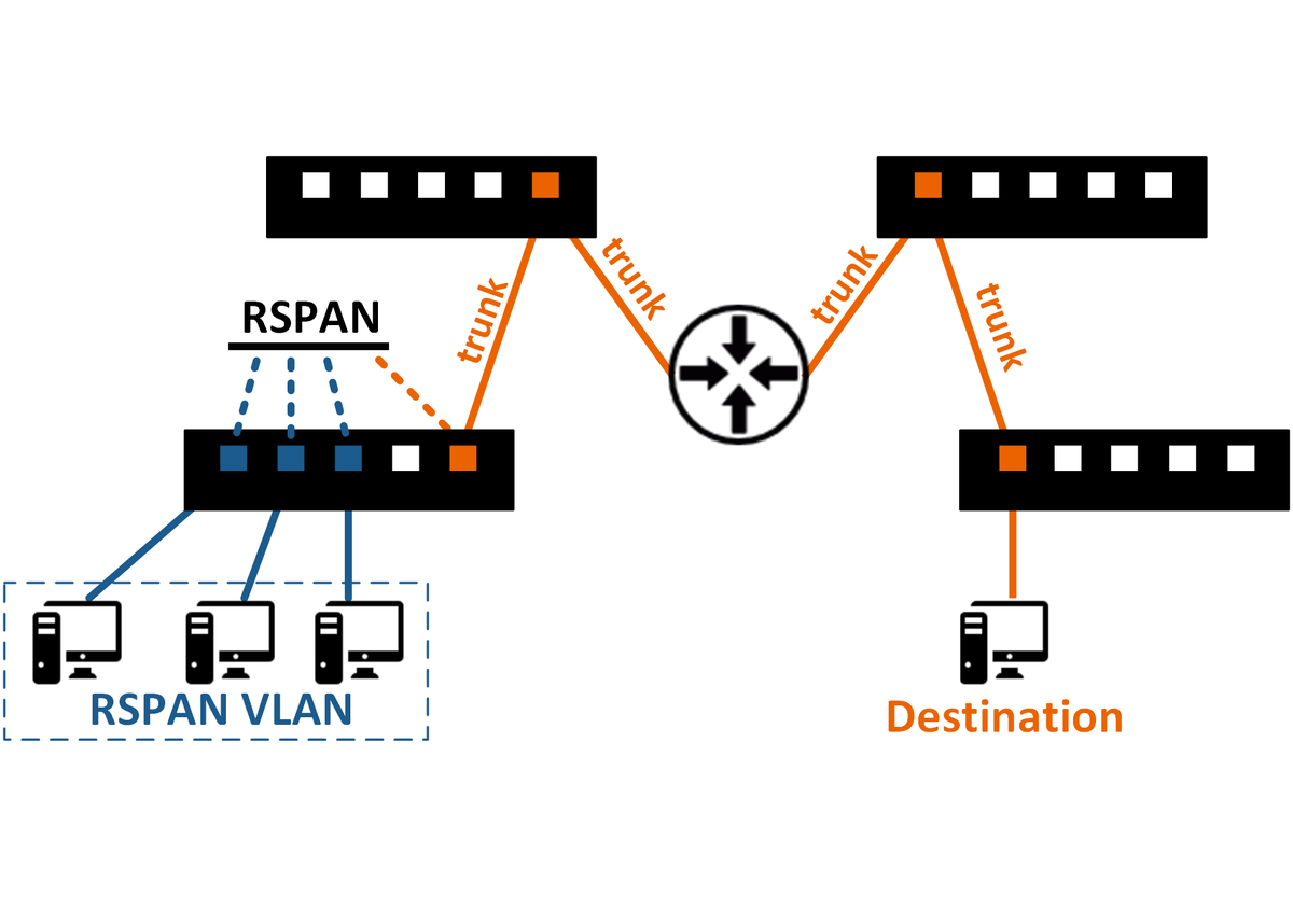Remote SPAN (RSPAN) же позволяет производить мониторинг трафика на физически удаленных портах, через сеть коммутаторов.