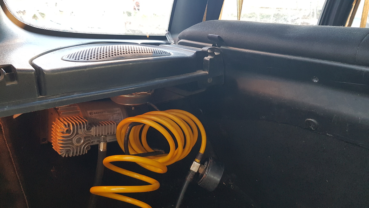 Несколько раз, забыв компрессор в гараже, чаще всего после внутренней уборки, задумался о стационарной установке. Сначала хотел установить под капотом, но побоялся что рассохнутся резинки, после каждодневного нагрева остывания. В результате долгих раздумий, решил установить под задней боковиной под динамиком. Протянул качественный провод, от постоянных 12 вольт. Чтобы можно было подкачать колесо, без включения зажигания. Конечно же через предохранитель,который устанавливается на провод. на корпусе прибора имеется выключатель. Закрепил компрессор на два самореза, обязательно через резиновую прокладку из старой автомобильной камеры, чтобы снизить вибрацию. В комплекте к компрессору шел витой шланг, около 8 метров. Так что достает до всех колес и до пристегнутого прицепа, без проблем. Шланг крепится к компрессору на быстросъеме, так что , в любой момент можно отстегнуть и спрятать в бардачок. На шланге стоит манометр и крепление на сосок колеса. Установкой очень доволен-во первых компрес