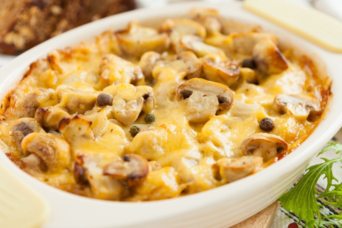 Если вы устали от скучных котлет и макарон, тогда этот рецепт для вас! Он простой, а самое главное не дорогой, очень вкусный и сытный. Для него нам потребуется : 1 куриная грудка 6 средних картофелин 250 мл сливок ( у меня 10%,не вижу большого смысла переплачивать за более жирные сливки на вкус данного блюда это никак не влияет.) 1 большая луковица 250 г шампиньонов немного сыра для посыпки Специи по вкусу Итак, приступим 1) Для начала нарежем картофель ( мне больше всего нравится кольцами, тогда удобнее создавать слои в запеканке) 2) Нарежем пластинками курицу и шампиньоны Можем начинать собирать запеканку 3) Смазываем дно формы для запекания оливковым маслом 4) Выкладываем первый слой курицы 5) Я ее солю и добавляю специи 6) затем идет слой картошки, его я тоже солю и посыпаю специями 7) Выкладываем лук, а сверху него шампиньоны 8) Перед тем как добавить в форму для запекания сливки, я добавляю в них немного специй для большего вкуса 9) Ставим блюдо в духовку на 30 минут на 180 г
