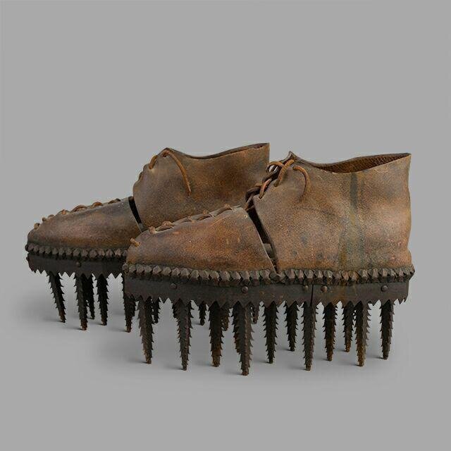 Эта обувь носила название «Soles» Ardèche в 19 веке, это были очень тяжелые туфли с подошвами, которые были покрыты лезвиями, острыми лезвиями, вес ботинка при этом составлял два килограмма. Не поверите, их предназначение - для шелушения каштанов. Плоды каштана очень богаты белками и углеводами, это классный ингредиент для добавления для муки и кондитерских изделий. А почему их добывали таким "варварским" способом можно судить по внешнему виду плодов. Но действие суровых ботинок происходило, когда плоды каштана были сухими, то есть в этом есть рациональное зерно. В отсутствие механизации и автоматизации люди находили своеобразный, выигрышный вариант. Если понравилась статья, подписывайтесь, делитесь, ставьте лайки !