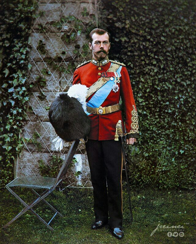 Моменты мировой истории на цветных и ретушированных фотографиях. Николай Второй в униформе Шотландского королевского полка. Сентябрь 1896 года. Австралийские военнослужащие ухаживают за японским солдатом, плененным около Науру.