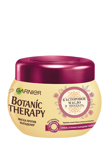 Для слабых и склонных к выпадению волос Эксперты Garnier в области ботаники отобрали укрепляющее Касторовое Масло и питательный Миндальдля создания уникальной рецептуры для слабых, склонных к выпадению волос. Эта исключительная рецептура эффективно воздействует на волосы, возрождает их силу и восстанавливает от самых корней. Ваши волосы мгновенно преображены. Они более крепкие, мягкие и легче расчесываются. Они вновь обретают красоту и силу день за днем. Применение: Для интенсивного укрепления обильно нанесите на влажные волосы, распределите по всей длине и оставьте на 3-5 минут. Затем тщательно смойте. Для достижения лучшего результата используйте весь комплекс продуктов гаммы Касторовое Масло и Миндаль. Подходит для частого применения.