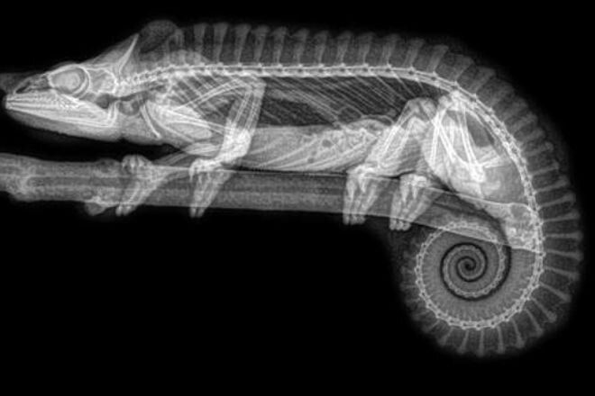 Один зоопарк из Южной Америки выложил в сеть очень необычные фотографии. Сделаны они были прямо во время рентгена некоторых из обитателей. Наверняка Вы не раз думали, как же выглядит позвоночник хамелеона, цепляющегося за ветку? :) Можете утолить свое любопытство, посмотрев фото ниже! Хамелеон Хвост ... Угадаете, чей? Ответ напишу внизу статьи, проверьте Вашу догадливость! Редчайший рентген змеи Уж кто-кто, а змеи скорее всего самые редкие гости рентгеновского кабинета. Ёж Ёжик в тумане был гораздо более милым, не правда ли? Птичий клюв Необычно выглядит. Кстати, если сделать рентгеновский снимок камня, внешне он будет очень похож на клюв. Представляете, какая в нем мощь? Ответ на вопрос, Чей же хвост: Бобра, конечно же! Угадали? Надеюсь, что да :)