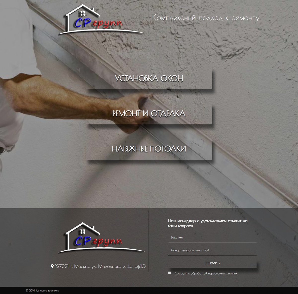 Закончили проект по созданию сайта для компании занимающейся установкой окон, натяжными потолками и прочими ремонтными работами.