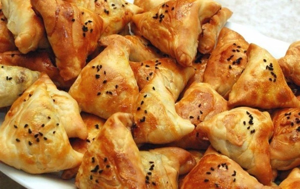 Самса Ингредиенты: Для начинки: - баранина (можно заменить свининой): 1 кг - лук: 5 шт. - соль, перец, пряности по вкусу Для теста: - мука 1 кг - соль на кончике ножа - вода: 150 мл Способ приготовления: Сделать тесто. Просеять муку, высыпать в миску, добавить соль, постепенно вливать воду и замешивать тесто. Готовое тесто накрыть салфеткой и поставить в теплое место на 50 минут. Приготовить начинку. Отрезать от мяса жир. Мясо порезать на маленькие кусочки, лук почистить, мелко порезать, добавить к мясу. Посолить, поперчить, добавить приправы, перемешать. Жир от мяса положить на сковородку и топить его на небольшом огне. Полученным жиром полить в мясо. Тесто раскатать, порезать на небольшие квадраты. На каждый квадрат положить 1 столовую ложку начинки, свернуть тесто конвертиком, плотно залепить края. Противень смазать маслом, положить самсу, выпекать 40 минут при температуре 200 С. Готовую самсу смазать сливочным маслом, можно посыпать тмином.