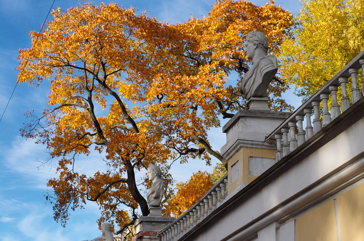 Дворец Бобринских был построен в конце XVIII века архитектором Луиджи Руска. Главный фасад выходит на Галерную улицу, а с противоположной стороны, на углу Адмиралтейских каналов, разбит сад. От набережной Адмиралтейского канала он отделён чугунной решёткой, а от со стороны Ново-Адмиралтейкого канала пространств замыкает каменная ограда, украшенная копиями античных бюстов.