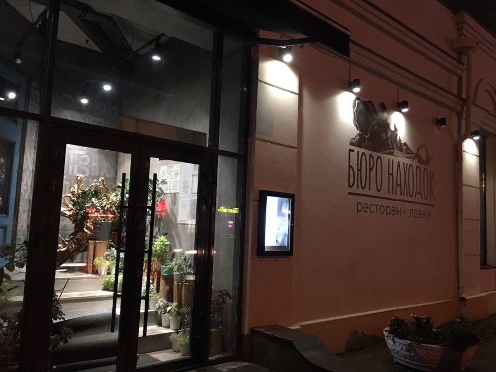 Некоторые заведения открывают шеф-повара. В них акцент ставится на кухню, ничто не должно отвлекать трапезничающих от содержимого тарелки. Другие заведения создаются под живые выступления, и в них обязательно хорошая акустика и наличествует сцена. В "Бюро Находок" акцент сделан на дизайн и интерьер. По слухам, любой понравившийся предмет можно купить и унести с собой, а целый угол у входа отведён под интерьерно-декоративные финтифлюшки с ценниками. Внутри и снаружи Ресторан расположен в отдельном здании на, и это подчёркивается, "историческом фундаменте". Как будто, приложив ухо к полу мы сможем ощутить биение ритма жизни мегаполиса. Зато вид на Плотинку просто отличный - из одного зала. Остальным придётся довольствоваться проезжей частью и машинами на Малышева. В тёплые месяцы со стороны Плотинки было открыто удобное летнее кафе, с отдельным меню и картой напитков. Упор на мороженое-лимонады оказался очень удачным, и в нём постоянно были гости. Дизайну и интерьеру самого заведения вп