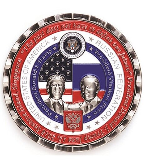 Ряд интернет-источников сообщил, что в интернет-магазине Белого дома США появилась в продаже памятная монета, посвященная встрече Владимира Путина и Дональда Трампа с тремя опечатками. Монета была изготовлена специально по заказу интернет-магазина White House в честь встречи двух президентов, которая состоялась в столице Финляндии Хельсинки 16 июля 2018 года. Встреча, проходившая более двух часов стала важным элементом развития российско-американских отношений. Но, к сожалению, монета, приуроченная к столь значимому событию, подвела своих создателей. На одной стороне монеты размещены изображения президентов России и США на фоне государственных флагов. На другой стороне отчеканено изображение хельсинского кафедрального собора, в непосредственной близости от которого проходили переговоры. На оборотной стороне монеты также размещены надписи на английском и русском языке с ошибками. В частности, обнаружены такие - «ддипломатическая история», «новое эра» и «Хельпинский саммит». Что тепер
