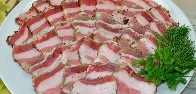 Проверенный рецепт! Сало получается очень вкусное, прямо тает во рту. Теперь готовлю только по этому рецепту. Попробуйте и вы! Такое сало можно подавать к борщу, картошке и просто есть как закуску, например, с хлебом и зеленым луком. Также я люблю его использовать для приготовления запеченной картошки (картошка-гармошка). Приготовление: 1 килограмм сала нарезаем небольшими кусочками толщиной примерно 5-6 см. Затем сало промываем в прохладной воде и обсушиваем с помощью полотенца. Теперь складываем сало в чистые банки, но не слишком плотно. Утрамбовывать не надо. Кстати, я использую обычно сало с мясными прослойками, оно получается самое вкусное. Далее делаем рассол. Кипятим 1 литр воды, добавляем 100 гр соли (если нет кухонных весов, то 4 столовые ложки без горки), следом кладем 3 лавровых листа, 10 горошин перца (можно также добавить пару горошин душистого перца). Можно положить еще черный молотый перец и любые другие специи на ваш вкус. Как только соль в рассоле растворится, добав