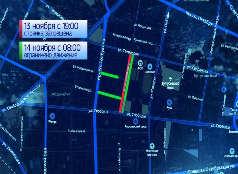 Следующий домашний матч черно-синих состоится 14 ноября. Из-за этого в Ярославле вновь будет действовать временные ограничения движения. С 7 вечера 13 ноября на участке улицы Володарского от Свободы до Свердлова нельзя будет поставить автомобиль на стоянку, как на четной, так и на нечетной стороне улицы. Здесь же, а также на участках улиц Угличской и Богдановича от проспекта Толбухина нельзя будет проехать в день матча с 8 утра. Ограничения продлятся до окончания игры.