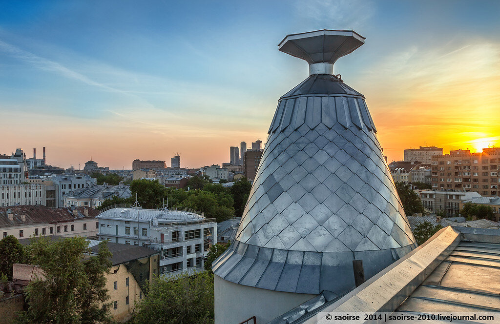 Его зовут «Дом под рюмкой». Появилось сие воплощение архитектурной мысли на Остоженке в 1909 году. Вообще-то дом № 3 состоит из двух частей. Первую, четырехэтажную, проектировал автор московских «тучерезов» Эрнст Нирнзее в 1904 году, но внимание народа привлекла вторая — авторства Валентина Дубовского. Потому что на крыше натуральная рюмка. Хоть и перевернутая. Версий, почему солидный доходный дом обзавелся таким украшением, было несколько, но все они сводились к одной теме. Мол, владелец его, купец Яков Филатов, запойно пил, и отец пообещал подарить ему дом, если тот расстанется с пагубной привычкой. По другой версии, инициатором здорового образа жизни сына была мать молодого гуляки. В третьей вариации сам Яков, чуть не пустив по ветру состояние, вовремя одумался, встал на путь истинный, построил во искупление грехов дом с дешевыми квартирами и в память о расставании с безалаберной пьяной жизнью увенчал свое жилище злодейкой-рюмкой, но опрокинутой: мол, все, баста! А пил, шушукали