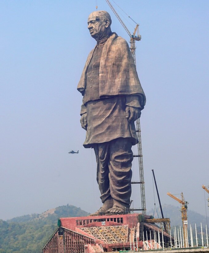 Сама статуя изображает Валлабхаи Пателя — индийского государственного деятеля, одного из лидеров Индийского национального конгресса (ИНК). После раздела Британской Индии Валлабхаи занял должность заместителя министра внутренних дел. Патель прилагал огромные усилия для того, чтобы Индия сохранила свои границы и не распалась на множество мелких государств. Открылась статуя 31 октября в Индии, что примечательно, так как Патель именно в этот день родился 143 года назад. Монумент получил название Статуя Единства и получился в высоту с постаментом 240 метров. Для сравнения, её высота почти вдвое больше, чем статуя Свободы в Нью-Йорке (93 метра) После окончания постройки статуя обошлась в 430 миллионов долларов, а длилась она 5 лет. Власти считают, что она станет достопримечательностью, способной привлечь в регион туристов. В её основании планируют открыть музей, а на уровне грудной клетки — обзорную галерею. _______________________________________________________________________________