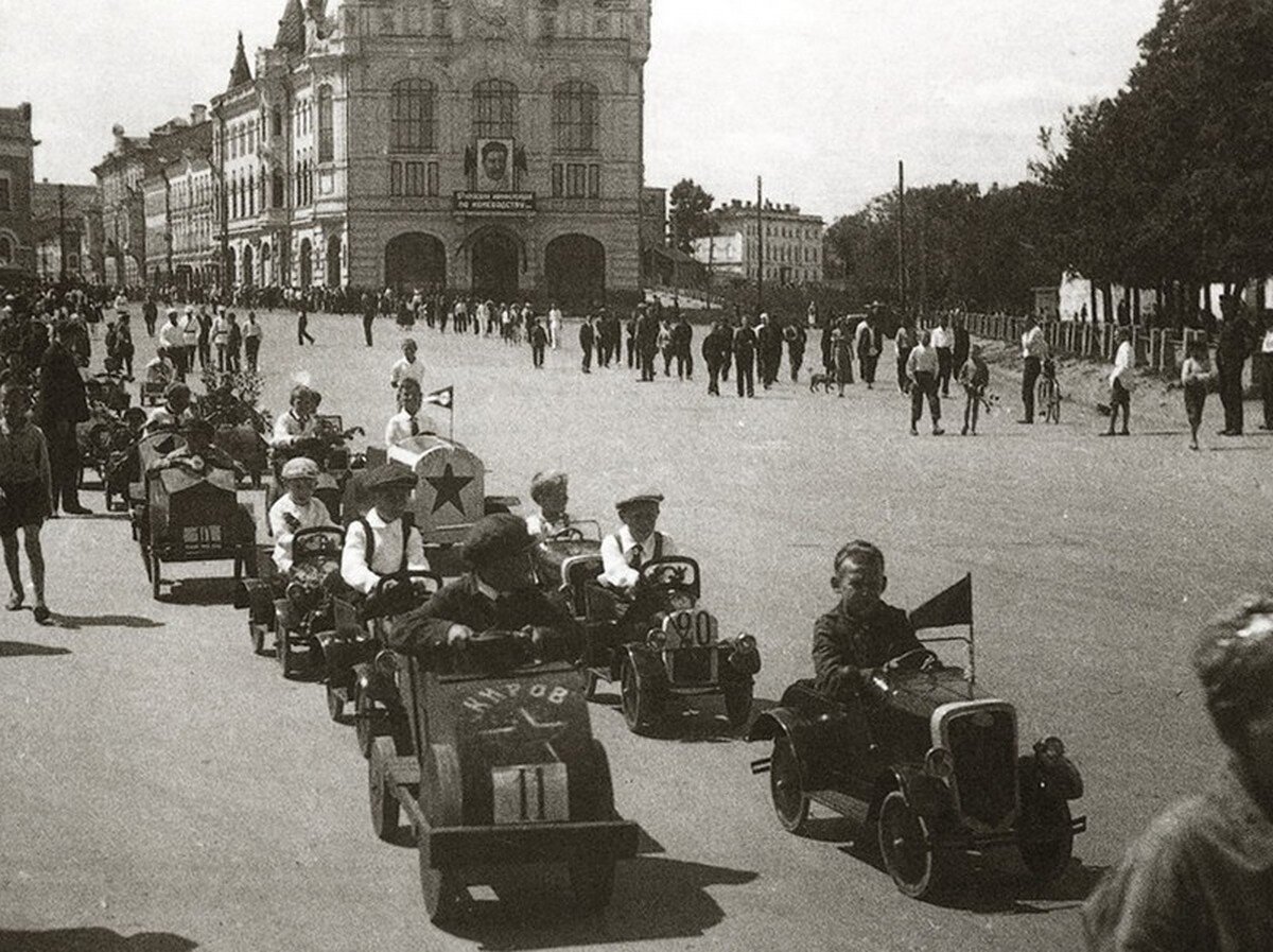 Первый автопробег на детских педальных автомобилях в СССР. 1934 год.