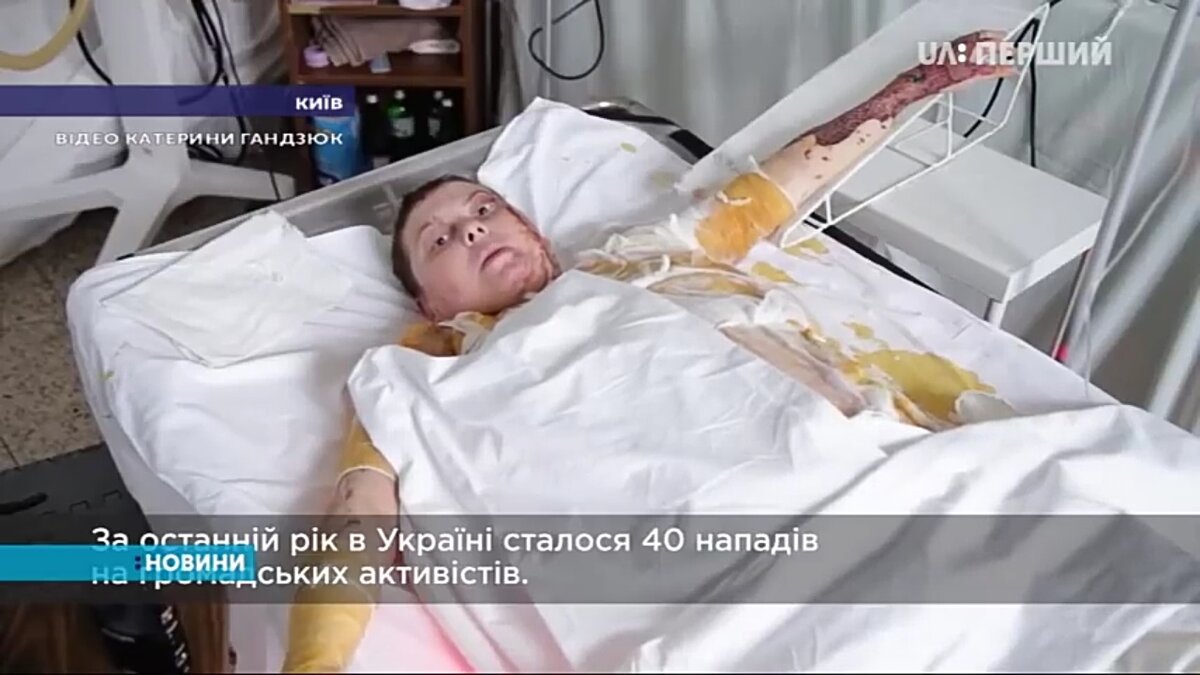 Катерина Гандзюк умерла после нападения. Преступник подкараулил советницу Мэра г.Херсон у её подъезда. Когда жертва подошла, он плеснул ей в лицо серную кислоту. Женщина почувствовала тепло на коже и увидела как одежда начинает "плавиться".