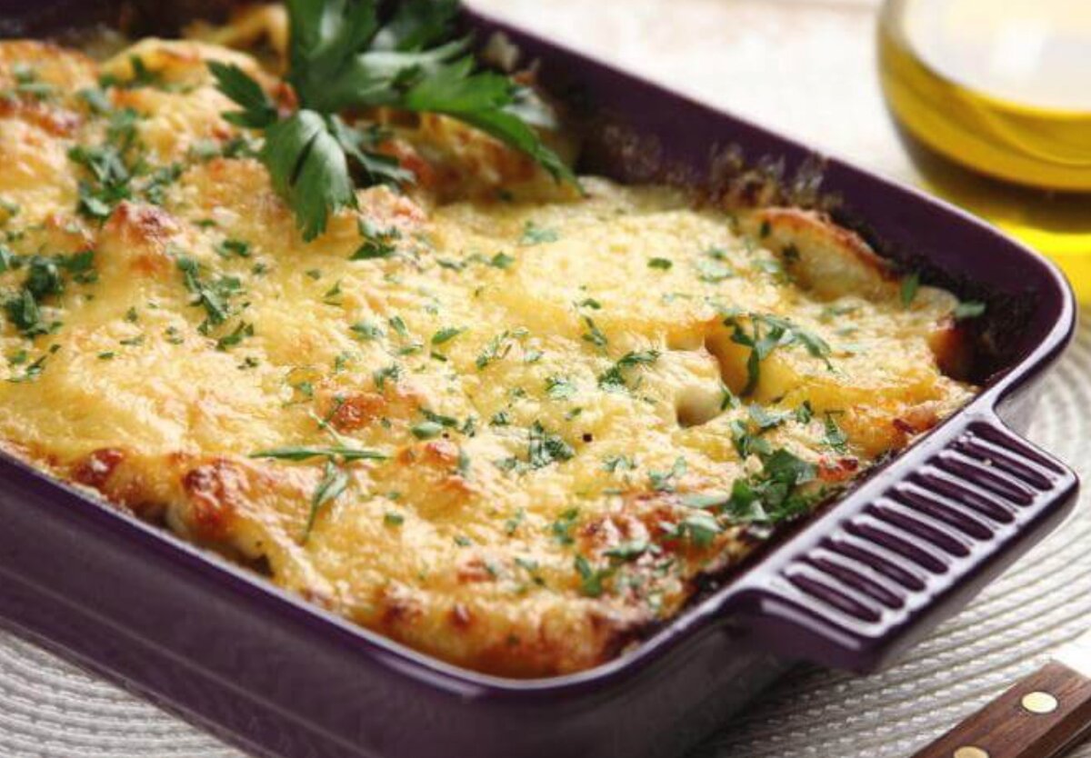 Красивая и вкусная Запеканка с картофелем, курицей и маринованными помидорами для семейного ужина
