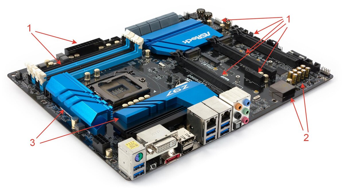 Основная электронная плата, установленная в системном блоке компьютера, ее роль заключается в связи электронных комплектующих и компонентов расположенных и подключенных к ней. Вот некоторый список компонентов установленных на материнской плате, а так же краткое описание их роли. Процессор – Мозг системной платы без его ведома не происходит не чего, занимается всеми вычислениями в системе. Оперативная память – Временная память в хранится информация к которой нужен быстрый доступ, например процессору, чтобы заложить или считать вычисленные данные. Звуковая карта – Обрабатывает вычисленные данные процессором и воспроизводит их в звук. Видео карта- Обрабатывает вычисленные данные процессором и выводит их на экран. Краткий список периферийных и внутри установленных устройств подключаемых к материнской плате: Жесткий диск- Постоянный хранитель информации, занимается считывание записью и воспроизведением информации в совокупности обработанной выше описанными компонентами. Дисковод оптиче