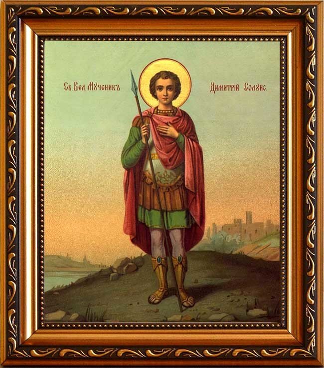 8 ноября - Русская православная церковь чтит память Святого великомученика Дмитрия Солунского! Димитрий Солунский Святой великомученик. Икона на холсте. Родители, тайные христиане, крестили Димитрия и наставили в вере. Димитрий, по достижению совершеннолетия, был назначен властителем Фессалонийской области. Главной обязанностью его было защищать свою область от внешних врагов, но император потребовал от него также, чтобы он истреблял христиан. Димитрий вместо этого стал искоренять языческие обычаи, а язычников обращать к Христовой вере. Чудо Димитрия Солунского. Икона в серебряном окладе.