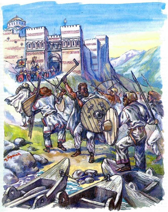 Начало становления Руси как единого государства принято ассоциировать с датой ее крещения равноапостольным князем Владимиром в 988 году. Этому, как известно из истории предшествовал ряд событий, известных нам, в частности, из памятника древней письменности «Повести временных лет»: поход князя Олега на Царьград, крещение княгини Ольги – так или иначе, хоть и разноплановое столкновение, пересечение, знакомство с культурой византийской империи. История веками раньше ограничивается данными исключительно источников «с той стороны», рассказывающих о набегах ярого, сильного, но слаборазвитого в культурном плане северного соседа на балканские границы ромеев… впервые славяне упоминаются под их собственным именем в связи с первым их организованным нападением на Византию в правление императора Юстина в 6 веке. Трудами видного российского академика Федора Ивановича Успенского и последующих поколений исследователей был доказан неоспоримый факт влияния наших предков на социально-экономическое ра