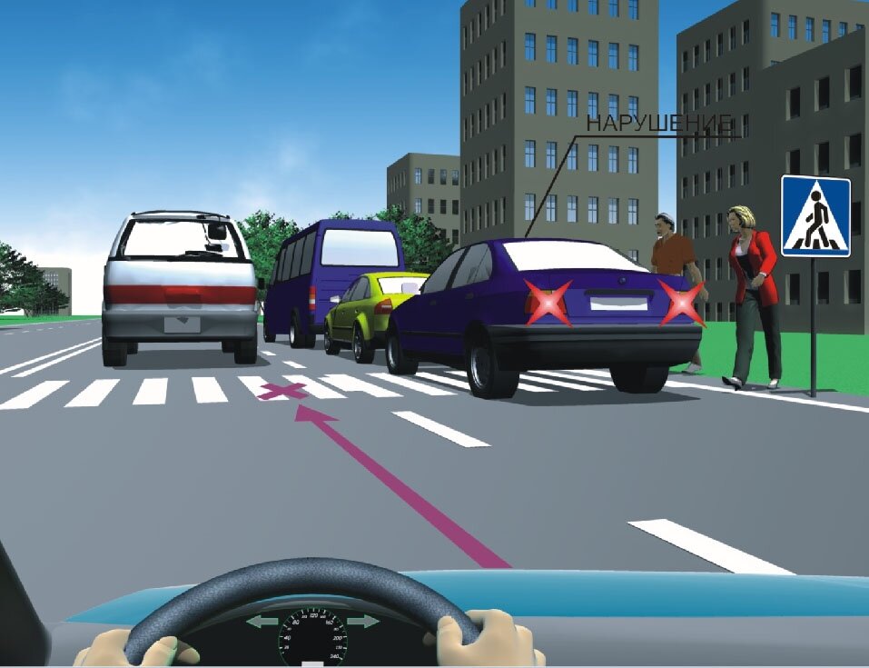Даже если автомобиль встал на «зебре» в результате затора, в любом случае водитель должен понести наказание. Данное требование объясняется следующими факторами: оставаясь на дорожной разметке, автомобиль создает помеху для нормального движения пешеходов; стоящая на «зебре» машина снижает видимость, из-за чего другой автомобилист может начать движение в то время, когда по разметке идут люди.