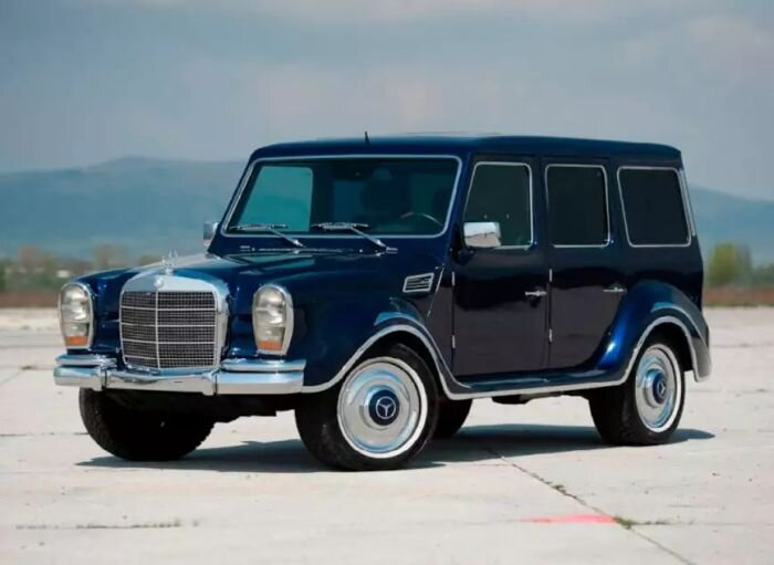 Фотографии этой, без сомнения странной машины, найдены в китайской соцсети Qzone. К сожалению, каких либо описаний к ней нет, насколько удалось перевести суть поста, состоявшего всего из одной строки, пользователь с совершенно невыговариваемым китайским именем интересовался – что за автомобиль такой, странный. Действительно, вопрос интересный. Очевидно, речь здесь идет о «Гелендвагене», Mercedes G-класса, передняя часть которого стилизована под Mercedes W100 «Grosser», и подобный лакшери-колхоз на «Геликах», кстати, встречался и раньше, вот например на этой машине. Здесь, кроме передней части всё осталось без изменений, и можно сказать, даже дало машине некий шарм. В случае с этим «Геликом», умельцы лакшери-колхоза пустились во все тяжкие. Плавные линии передних и задних крыльев, сужающиеся сзади на манер машин 30-х годов, очень контрастируют с квадратным кузовом G-серии, общая картина имеет вид мягко говоря, странный. Но на вкус и цвет, как говоирться… Примечательно, что на одном