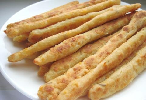 На 4 порции- 300 грамм муки 150 грамм сыра 180 грамм сливочного масла 1 чайная ложка соли 0,5 чайной ложки молотой паприки 1 яйцо 100 грамм семечек кунжута Сыр натереть на мелкой терке,масло нарезать мелкими кусочками. Все перемешать с мукой,добавить соль и паприку.Тесто положить на 1 час в холодильник. Затем из теста скатать на посыпанном мукой столе палочки размером с карандаш.Яйцо взбить с 1 чайной ложкой воды и смазать им палочки с помощью кисточки. Нагреть духовку до 180 градусов. Сырные палочки обвалять в семенах кунжута,положить на выстланный пергаментом противень и выпекать 15 минут.Дать остыть. Сырные палочки можно посыпать не только семенами кунжута,но и рублеными тыквенными семечками или семенами подсолнечника.Ткаже можно попробовать в качестве панировки рубленные фисташки. В сырное тесто иногда добавляют сушеную пряную зелень или щепотку корицы.Это придает закуске изысканный аромат. По этому рецепту можно также приготовить чипсы.Охлажденное тесто тонко раскатать, нарезать к