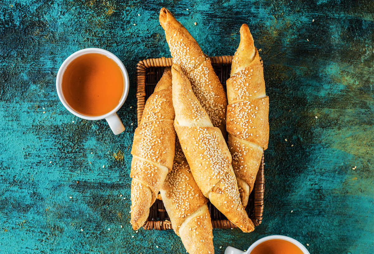 Яйцо — 1 шт. Приготовление 1️⃣ Тесто замесить руками, используя глубокую миску или при помощи миксера с насадкой для замеса теста. 2️⃣ Все ингредиенты для теста соединить вместе и мешать до однородного состояния, но не более 5–6 минут. После замеса из теста сформировать шар, замотать в пищевую пленку и оставить в холодильнике на 15–20 минут. При работе брать порциями из холодильника. 3️⃣ Готовое тесто раскатать в пласт диаметром примерно 40 см и толщиной 3 мм. Его разделить на 8 треугольников, сперва разрезав крест-накрест, а потом каждый треугольник еще раз по диагонали. 4️⃣ На широкое основание получившейся заготовки-треугольника выложить творожную начинку и завернуть, слегка прижав края рогалика. Обвалять его в сахаре, смазать яйцом, посыпать кунжутом. Выпекать при температуре 190 °С в течение 25–30 минут. Подавать, слегка остудив, или холодными.