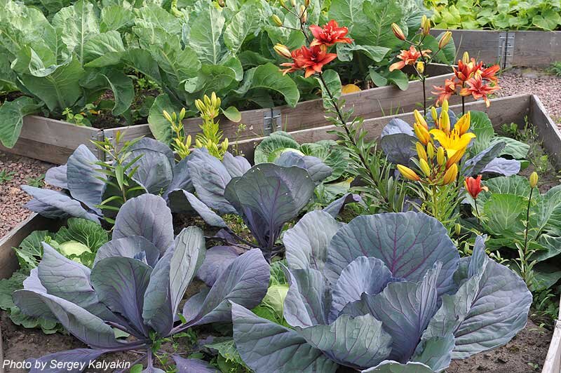 Однажды на даче я осенью в спешке прикопал луковицы лилий в огороде и забыл про них. Весной родители посадили капусту. И летом нашему взору предстала очень необычная картина: «королева и капуста»))) Понятное дело, агротехника лилий никак не вписывается в огородную, и лилии мы пересадили, но с тех пор идея украшать огород цветами постоянно крутится у меня в голове. Ведь когда-нибудь и у меня будет большой сад с приличным по размерам огородом. И уже сейчас я стараюсь подмечать, что растет среди овощей у коллег. Поделюсь наблюдениями. Во-первых это незимостойкие корнеклубневые и клубнелуковичные цветы, которые просто удобно сажать в огороде: к уборке урожая они отцветают и их тоже выкапывают на хранение. Такие, как георгины и гладиолусы. Во-вторых, это растения, так или иначе помогающие бороться с вредителями огородных культур. Например, бархатцы, или тагетес, используют для борьбы с нематодами садовой земляники, картофеля и даже флокса метельчатого. Для этого их высаживают п