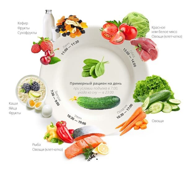 Давайте рассмотрим примерный рацион на день: