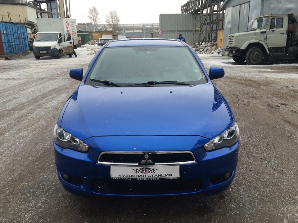 Дорогие друзья! Добрый день! Предлагаем Вашему вниманию отчёт о проделанной работе по кузовному ремонту а/м Mitsubishi Lancer 10, который в результате наезда на металлическое ограждение, получил повреждения задней правой двери, а также правого порога в районе арки заднего крыла. Повреждения по своей сути получились незначительными, но довольно неприятными — лёгкими царапинами их точно не назовёшь. Данный автомобиль поступил к нам в ремонт в таком виде После технической мойки мы сфотографировали повреждения на данном автомобиле и переместили его в подготовительных цех, где начали заниматься жестяными работами. Дверь и порог максимально вытянули споттером, после чего данные детали были в несколько слоёв зашпаклёваны, потом загрунтованы и автомобиль был перемещён в окрасочно-сушильную камеру. Примечание: так как правый порог был повреждён в районе арки заднего правого крыла и ремонтная зона поднялась вверх на само крыло, было принято решение заматовать заднее правое крыло и потом п