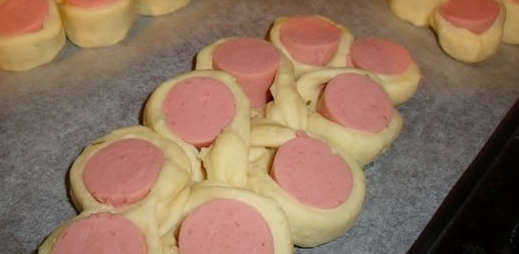 Эта вкусняшка будет многим по душе. Часто сосиски в тесте предлагают в столовых, кафе, и многие готовят их для завтраков. Такая выпечка будет отличным дополнением в качестве закусочного блюда на пикнике, ее удобно брать с собой в дорогу. Сегодня я Вам расскажу как сделать красивые сосиски в тесте по-новому. Такое блюдо привлекает не только своим вкусом, но и удивительным внешним видом. Для приготовления нам понадобится: Ингредиенты для теста: Готовим тесто: Развести дрожжи в подогретом молоке. Масло растопить и слегка остудить. В глубокой емкости смешать сахар, соль, муку, яйца, масло, молоко с дрожжами и отправить в холодильник на ночь. Тесто приготовленное таким способом получается очень мягким и пышным. Способ приготовления наших вкусняшек: Тесто делим на небольшие кусочки, которые кладем на доску, и добавляем муки. Скалкой придаем каждому кусочку форму овала небольшой толщины. Сосиски выкладываем на тесто и закрепляем края, как будто делаем пирожки. Переворачиваем сосиски с тест