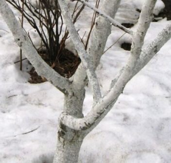 Поэтому в конце зимы – начале весны с наступлением теплых дней побелку обновляют. Если осенью стволы и ветки побелены не были, их рекомендуется побелить в феврале – марте.