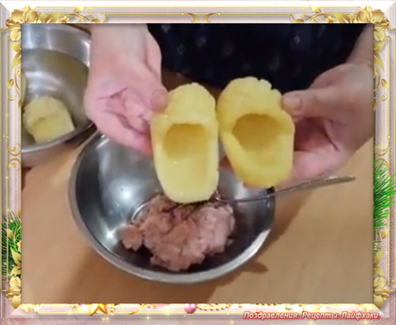 Картофельные лапти с начинкой Оригинальная горячая закуска: Новогодний рецепт!