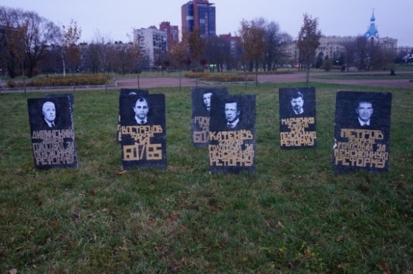 В Пулковском парке установили надгробия с именами восьми единороссов, поддержавших пенсионную реформу