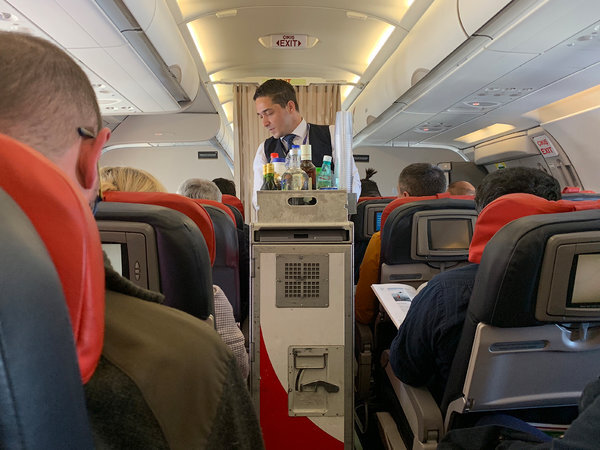 Все-таки, турки молодцы: у них не только крутые курорты, но и авиакомпания. Turkish Airlines не раз получала звание лучшей европейской авиакомпании года и когда я в очередной раз поднимаюсь на борт самолетов с красным тюльпаном на фюзеляже, я снова в этом убеждаюсь. Не учитывая особенностей сервиса и салона, Турки всегда отличались хорошим питанием на борту самолета: многие мои друзья и знакомые считают, что лучше Турков вообще никто не кормит в полете. Не знаю, насчет лучше всех, но самолетная еда у них и правда на высоте,и это факт. Вот, к пример, как кормит Turkish Airlines на рейсах из Москвы в Стамбул длительностью 2,5 часа (напомню, российский авиакомпании на полетах до 3-х часов ограничиваются лишь сендвичем и напитками). Первое, что бросается в глаза на тележке стюарда, который раздает горячий обед, это алкоголь. Даже водку наливают, причем Absolut. Вино, пиво, виски, коньяк - все тоже есть. На горячее - традиционный турецкий кебаб с рисом и овощами гриль под соусом. В дополне