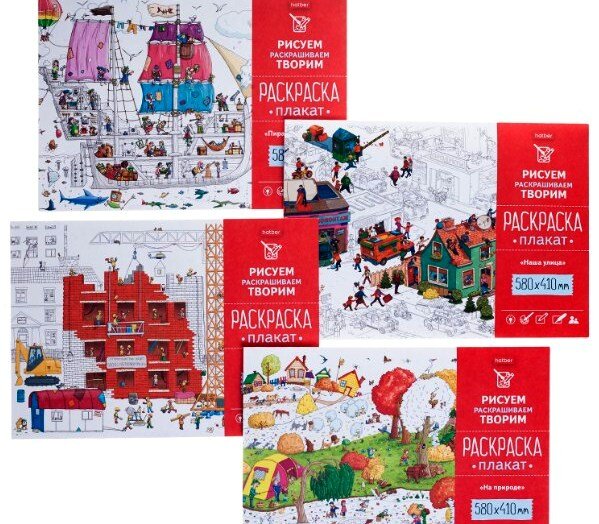 В ассортименте компании «ХАТБЕР-М» появились изделия, о которых мечтают не только дети, но и взрослые! Больше не надо рисовать на обоях и ограничиваться раскрасками небольшого формата. Раскраски-плакаты ТМ Hatber серий «На природе…», «Наша улица», «Строим дом» и «Пиратский корабль» гораздо интереснее. Раскрашивать их можно часами и даже днями, одному или в дружной компании, повесив на стене или разложив на полу – однозначно будет весело и увлекательно. Они огромные, размером с плакат А2 формата, забавные, а также с определенной сюжетной линией и простыми понятными деталями и элементами. Плотная качественная бумага подходит для раскрашивания цветными ручками, карандашами, фломастерами, маркерами и даже красками. Осторожно! Вызывает большой интерес как у детей, так и у взрослых! Во время раскрашивания можно придумать увлекательный рассказ о героях, изображенных на изделиях, тем самым способствовать развитию речи у детей. Малыши научатся подбирать подходящие цвета, комбинировать их. Ра