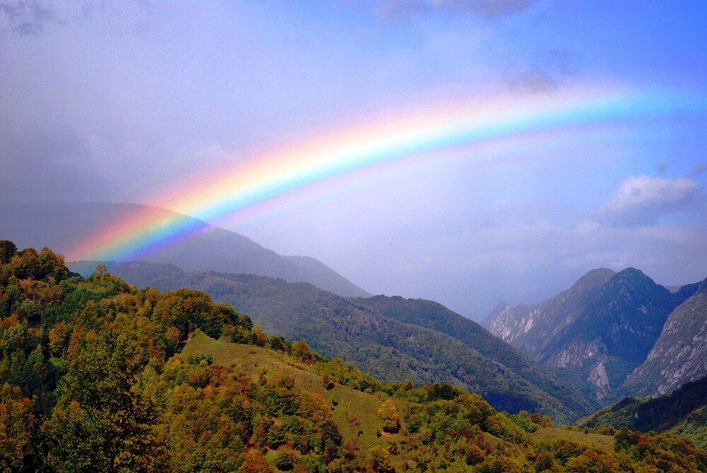 Итак, теперь мы знаем, что в природе для появления радуги нужен свет и обильная влажность. Мы видим «коромысло» как раз после дождя (иногда и во время него) в солнечном свете. Также увидеть радугу можно в солнечный день у водоёмов, самая яркая — у водопада.