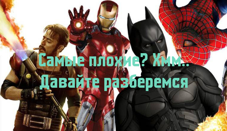 Не так давно в прокат вышел многообещающий фильм - "Веном". Он не получился откровенно плохим, но и номинантом на премию оскар скорее всего не пойдет. И так как настроения нет что бы писать о лучших кинолентах, будем писать об отвратительных фильмах героев в красивых костюмах (не всегда красивых). "Фантастическая четверка" Фильм провалился из-за самой киностудии Fox. Fox не смогли обеспечить сценарием неопытного режиссера Джоша Транка. А после того как они поняли, что Транк наснимал фигни, они заставили его переснимать и сокращать фильм. И в конечном итоге фильм получился чуть больше чем 1 час 30 мин, что тоже привело к провалу. Костюмы получились тоже не очень. "Бэтмен и Робин" "Бэтмен и Робин" получился жалкой пародией на фильмы о супергероях. Во первых: потому что они приделали к костюмам Бэтмена и Робина соски! Во вторых: весь фильм стал каким-то маскарадом из прекрасной актерской команды. При любом упоминании об этой киноленте актеры очень сильно краснели от стыда. "Бэтмен проти