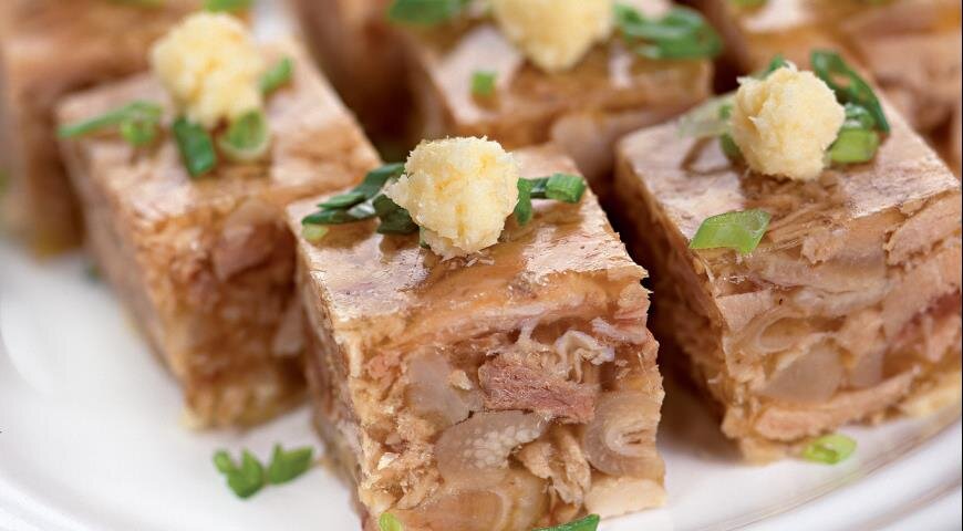 Доброго здоровья, дорогие друзья! Сегодня готовим холодец. Наверное все любят это кушанье, а кто-то готовил сам. Процесс, конечно, долгий, но того стоит. Расскажу как готовлю его я. Кастрюлю беру десятилитровую, кладу в нее одну свиную ножку, небольшую рульку и кусок говядины грамм 400 (можно готовить из свиной головы, можно добавлять свиные уши, хвост). Варю 3-4 часа. После закипания огонь уменьшаю, чтобы бульон получился прозрачным крышку слегка приоткрываю, в бульон кладу одну среднюю луковицу или морковь, но можно и без них. В конце варки мясо должно легко сниматься с кости. Дальше снимаю с огня, шумовкой вынимаю кости и мясо в таз, даю остыть. Затем отделяю мясо от костей, мясо мелко шинкую (можно перемолоть на мясорубке)лично мне, нравиться кусочками, кости выбрасываю, а мясо заливаю процеженным бульоном. Добавляю по вкусу соль, перец, довожу до кипения (но не кипячу), кладу измельченный чеснок (одну головку) и даю настояться. Затем разливаю в подготовленные емкости, остужаю и у